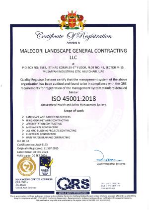 Malegori is ISO Certified Occupational Health & Safety Management: